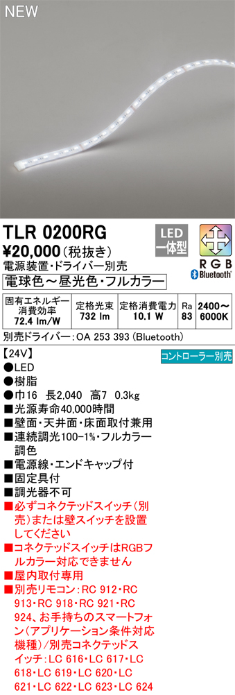 オーデリック TLR0200RG 間接照明 長2040 テープライト トップビュータイプ フルカラー 調光調色 リモコン別売 電源装置・ドライバー別売 LED一体型 [tlr0200rg]