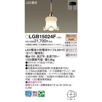 パナソニック LGB15024F ペンダント LED(電球色) 天井吊下型 ダイニング用 直付タイプ ガラスセード LED電球交換型 金色古味仕上 [lgb15024f]