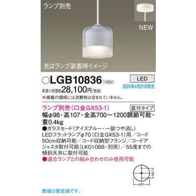 パナソニック LGB10836 ペンダント ランプ別売 LED 天井吊下型 直付タイプ ガラスセード アイスブルー [lgb10836]