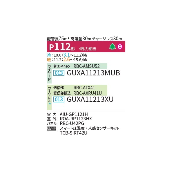 日本キヤリア/旧東芝 GUXA11213MUB 業務用エアコン 天井カセット形 4方向吹出し ウルトラパワーエコ シングル P112 4馬力 三相200V ワイヤード ♭♪ [guxa11213mub]