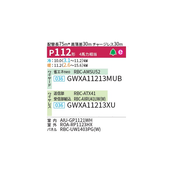 日本キヤリア/旧東芝 GWXA11213MUB 業務用エアコン 天井カセット形 2方向吹出し ウルトラパワーエコ シングル P112 4馬力 三相200V ワイヤード ♭♪ [gwxa11213mub]