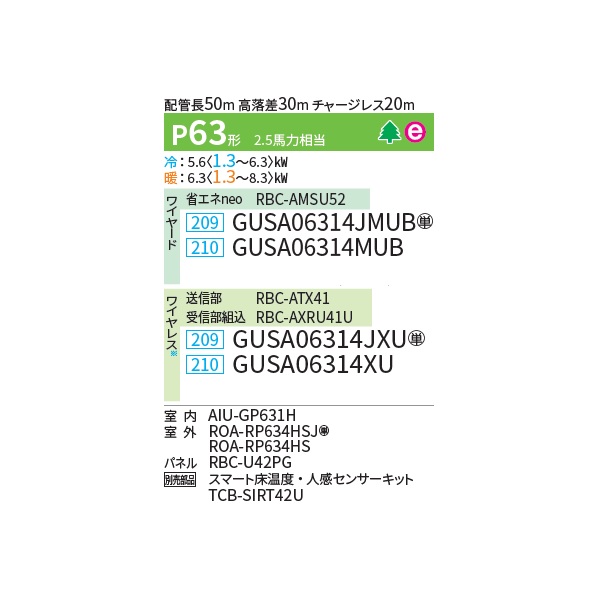 日本キヤリア/旧東芝 GUSA06314MUB 業務用エアコン 天井カセット形 4方向吹出し スーパーパワーエコゴールド シングル P63 2.5馬力 三相200V ワイヤード ♪∀
