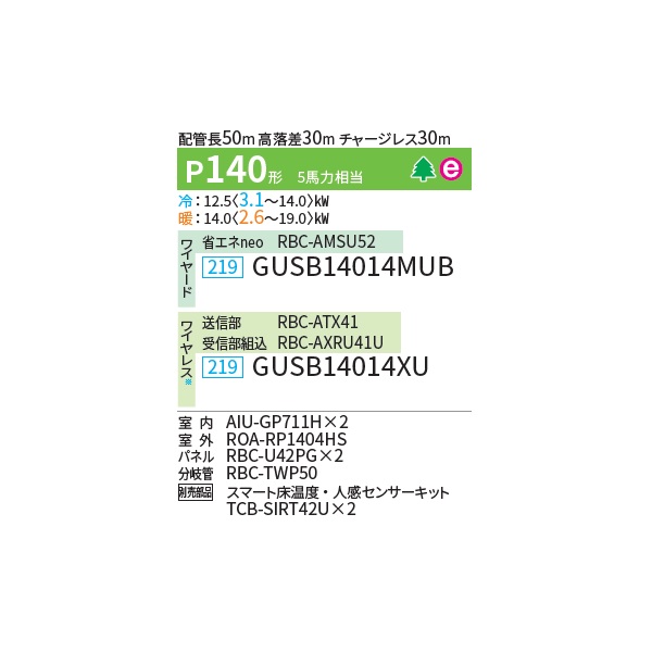 日本キヤリア/旧東芝 GUSB14014MUB 業務用エアコン 天井カセット形 4方向吹出し スーパーパワーエコゴールド 同時ツイン P140 5馬力 三相200V ワイヤード ♪∀