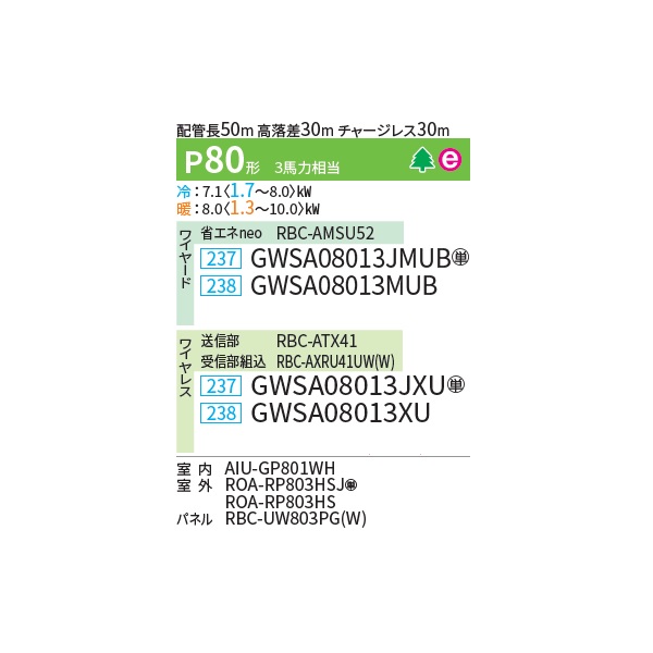 日本キヤリア/旧東芝 GWSA08013XU 業務用エアコン 天井カセット形 2方向吹出し スーパーパワーエコゴールド シングル P80 3馬力 三相200V ワイヤレス ♭♪∀ [gwsa08013xu]