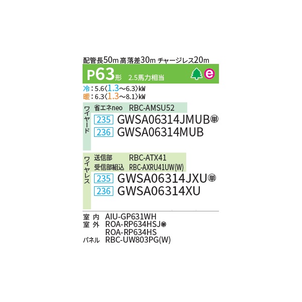 日本キヤリア/旧東芝 GWSA06314JMUB 業務用エアコン 天井カセット形 2方向吹出し スーパーパワーエコゴールド シングル P63 2.5馬力 単相200V ワイヤード ♪∀ [gwsa06314jmub]