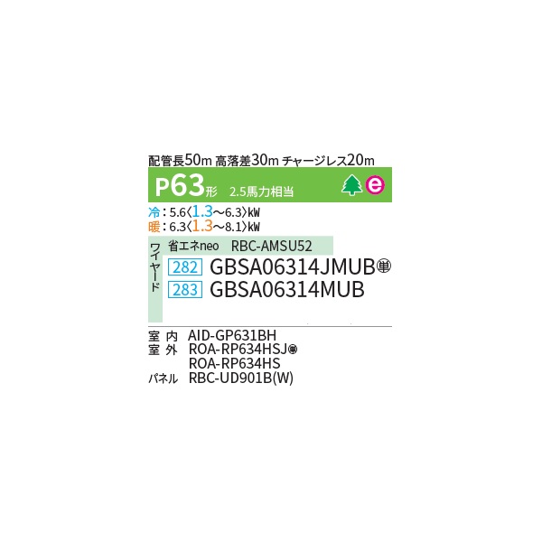 日本キヤリア/旧東芝 GBSA06314MUB 業務用エアコン 天井埋込形 ビルトイン スーパーパワーエコゴールド シングル P63 2.5馬力 三相200V ワイヤード ♪∀