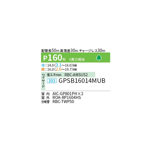 日本キヤリア/旧東芝 GPSB16014MUB 業務用エアコン 厨房用 天井吊形 スーパーパワーエコゴールド 同時ツイン P160 6馬力 三相200V ワイヤード ♪∀