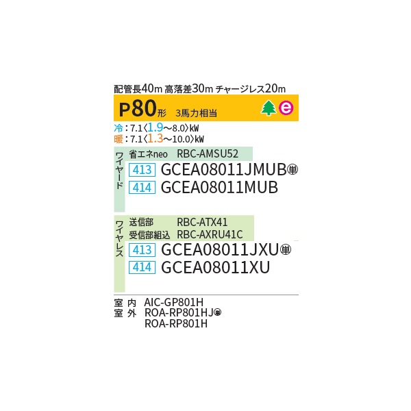 日本キヤリア/旧東芝 GCEA08011MUB 業務用エアコン 天井吊形 スマートエコneo シングル P80 3馬力 三相200V ワイヤード ♭♪∀