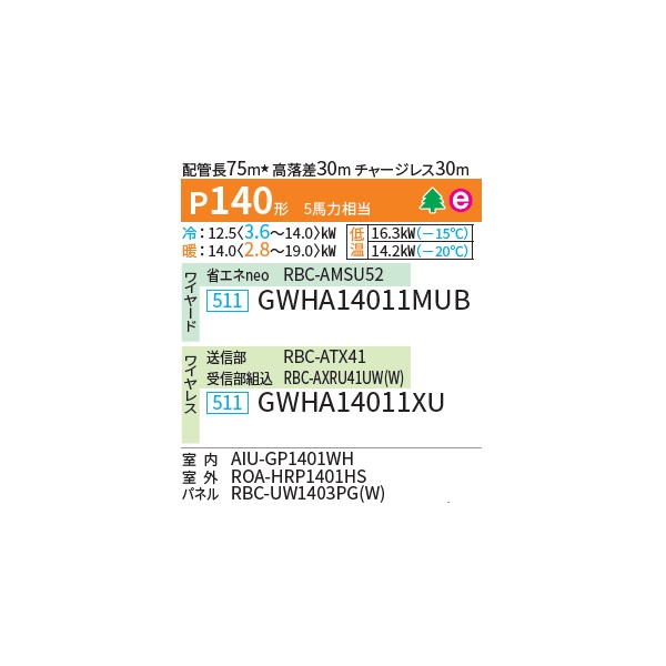 日本キヤリア/旧東芝 GWHA14011MUB 業務用エアコン 天井カセット形 2方向吹出し スーパーパワーエコ暖太郎 シングル P140 5馬力 三相200V ワイヤード ♪∀