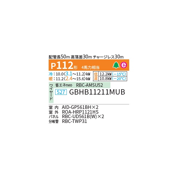 日本キヤリア/旧東芝 GBHB11211MUB 業務用エアコン 天井埋込形 ビルトイン スーパーパワーエコ暖太郎 同時ツイン P112 4馬力 三相200V ワイヤード ♭♪∀