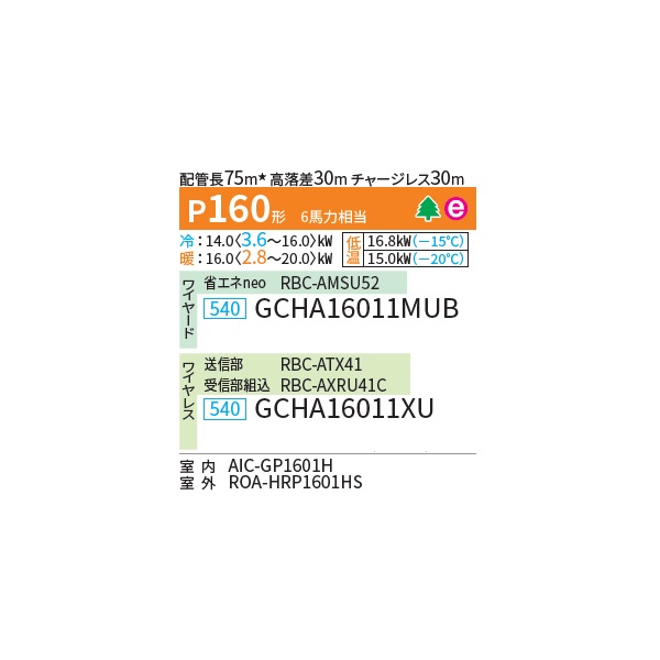 日本キヤリア/旧東芝 GCHA16011MUB 業務用エアコン 天井吊形 スーパーパワーエコ暖太郎 シングル P160 6馬力 三相200V ワイヤード ♪∀