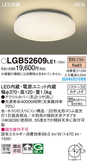 パナソニック LGB52609LE1 シーリングライト LED(電球色) 小型 拡散タイプ カチットF ♭ [lgb52609le1]