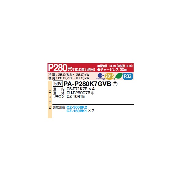 型番:PA-P280K7GVB / PAP280K7GVB / XPA-P280K7GVB / XPAP280K7GVB
