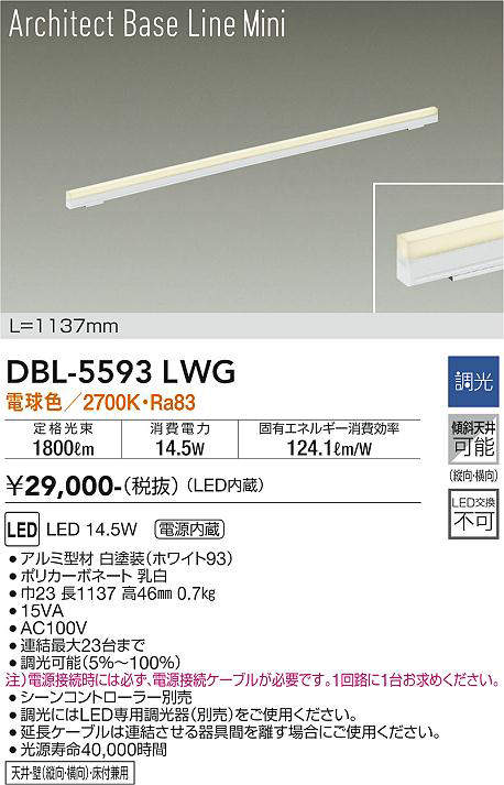 大光電機(DAIKO) DBL-5593 LWG ベースライト L=1137mm 調光(調光器別売) LED 電球色 ArchitectBaseLineMini ホワイト [dbl-5593lwg]