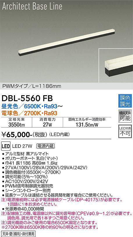 大光電機(DAIKO) DBL-5560 FB 間接照明 L=1186mm 調色調光(調光器別売) LED ArchitectBaseLine PWMタイプ ブラック