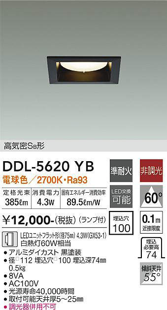大光電機(DAIKO) DDL-5620 YB ダウンライト 埋込穴□100 非調光 LED 電球色 ランプ付 高気密SB形 準耐火 ブラック