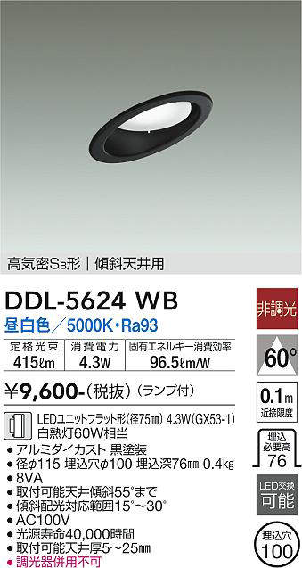 大光電機(DAIKO) DDL-5624 WB ダウンライト 埋込穴φ100 非調光 LED 昼白色 ランプ付 高気密SB形 傾斜天井用 ブラック [ddl-5624wb]