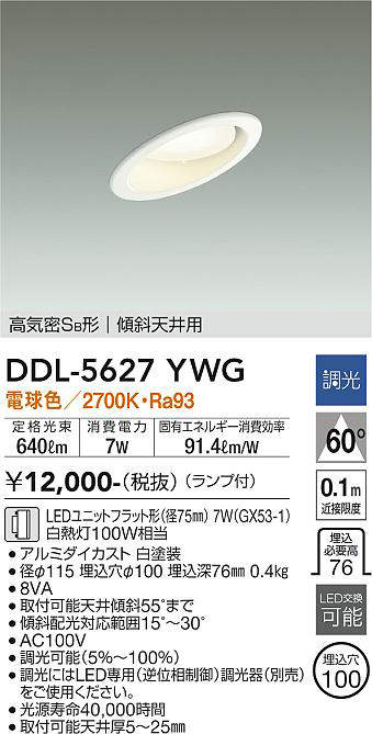 大光電機(DAIKO) DDL-5627 YWG ダウンライト 埋込穴φ100 調光(調光器別売) LED 電球色 ランプ付 高気密SB形 傾斜天井用 ホワイト [ddl-5627ywg]