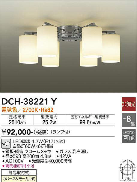 大光電機(DAIKO) DCH-38221Y シャンデリア ランプ付 非調光 電球色 〜8畳 クローム [♭] [dch-38221y]