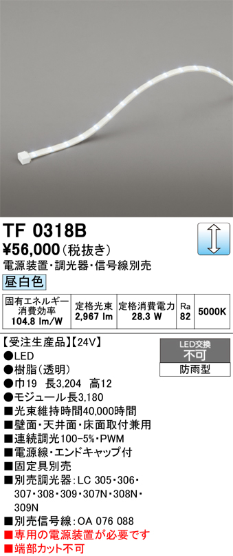 オーデリック TF0318B 間接照明 テープライト 長3180 調光(調光器別売) 電源装置・信号線別売 LED一体型 昼白色 防雨型 受注生産 [§] [tf0318b]