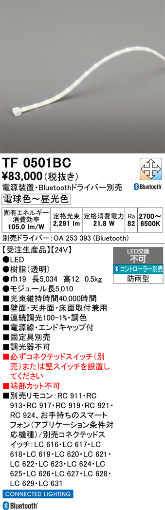 オーデリック TF0501BC 間接照明 テープライト 長5010 調光調色 Bluetooth リモコン・電源装置・ドライバー別売 LED一体型 電球色〜昼光色 防雨型 受注生産 [§] [tf0501bc]