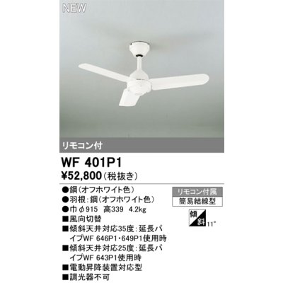 オーデリック WF401P1 シーリングファン 器具本体 リモコン付 オフホワイト [wf401p1]