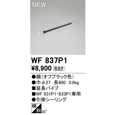 オーデリック WF837P1 シーリングファン 部材 延長パイプ 長600 オフブラック [wf837p1]