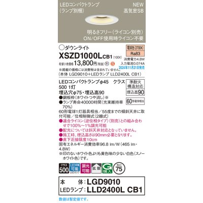 パナソニック XSZD1000LCB1(ランプ別梱) ダウンライト 埋込穴φ75 調光(ライコン別売) LED(電球色) 天井埋込型 高気密SB形 拡散タイプ ランプ交換型 ホワイト [xszd1000lcb1]