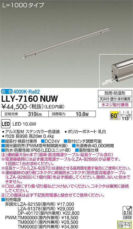 大光電機(DAIKO) LLY-7160NUW アウトドアライト 間接照明 L=1000 白色 ビーム角60度 DC24V専用 防雨・防湿形 電源別売 ステンカラー