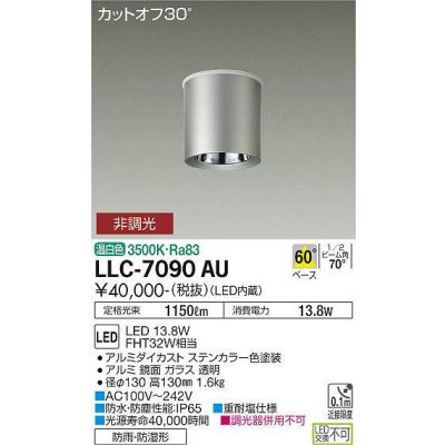 大光電機(DAIKO) LLC-7090AU シーリングダウンライト 非調光 温白色 ビーム角60度 防雨・防湿形 ステンカラー [llc-7090au]