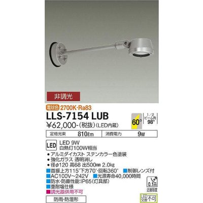 大光電機(DAIKO) LLS-7154LUB スポットライト 非調光 電球色 フラット ビーム角60度 500mmロングアームタイプ 超広角形 防雨・防湿形 ステンカラー [lls-7154lub]