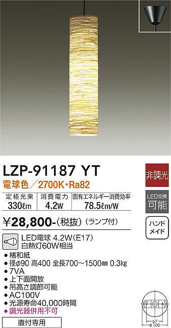 大光電機(DAIKO) LZP-91187YT ペンダント 和風 ランプ付 非調光 電球色 フランジタイプ [lzp-91187yt]