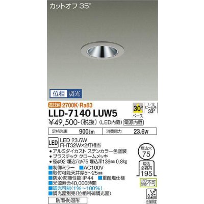 大光電機(DAIKO) LLD-7140LUW5 ダウンライト 埋込穴φ75 位相調光(調光器別売) 電球色 ビーム角30度 中角形 防雨・防湿形 ステンカラー