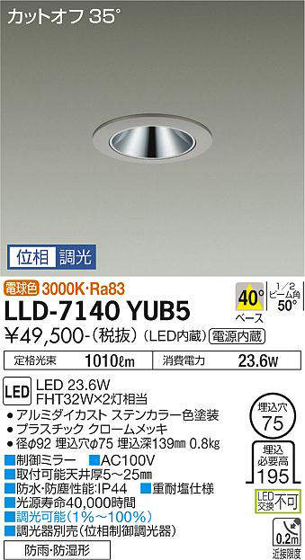 大光電機(DAIKO) LLD-7140YUB5 ダウンライト 埋込穴φ75 位相調光(調光器別売) 電球色 ビーム角40度 広角形 防雨・防湿形 ステンカラー