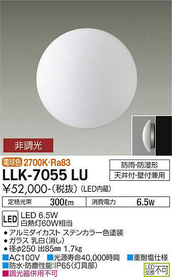 大光電機(DAIKO) LLK-7055LU シーリングウォールライト 非調光 電球色 全般拡散 φ250ドーム型 防雨・防湿形 ステンカラー [llk-7055lu]