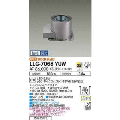 大光電機(DAIKO) LLG-7068YUW アウトドアライト グランドライト 位相調光(調光器別売) 電球色 ビーム角25度 広角形 防雨・防湿形 ステンカラー [llg-7068yuw]