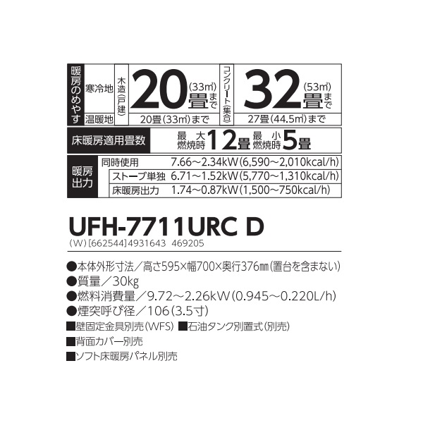 長府/サンポット UFH-7711URC D 石油ストーブ 床暖房内蔵 煙突式 カベック ホワイト (UFH-7711URC C 後継品)♪ [ufh-7711urc-d]