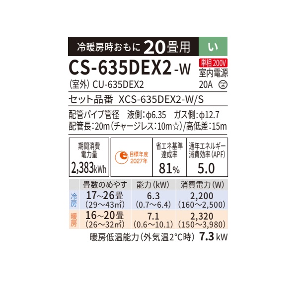 型番:XCS-635DEX2-W/S / CS-635DEX2-W / CS-635DEX2 / CS635DEX2