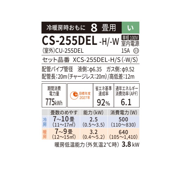 型番:XCS-255DEL-H/S / CS-255DEL-H / CS-255DEL / CS255DEL