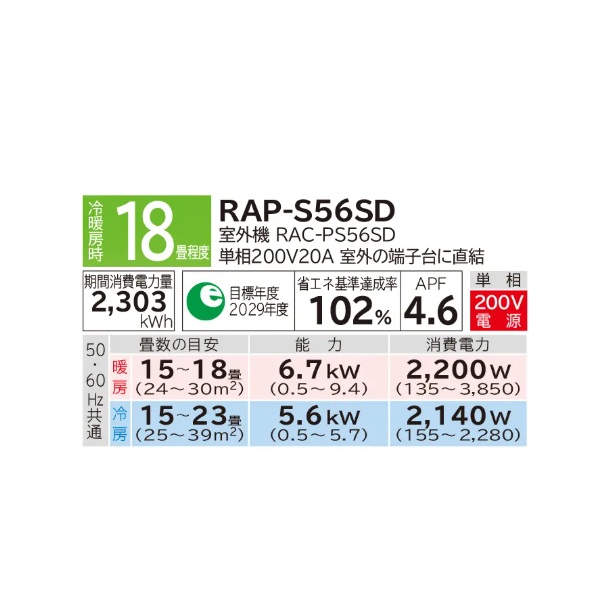 日立 [RAP-S56SD + 化粧パネル] ハウジングエアコン 一方向天井カセットタイプ PSシリーズ 白くまくん 18畳程度 単相200V (RAP-56SM2の後継品) ♪