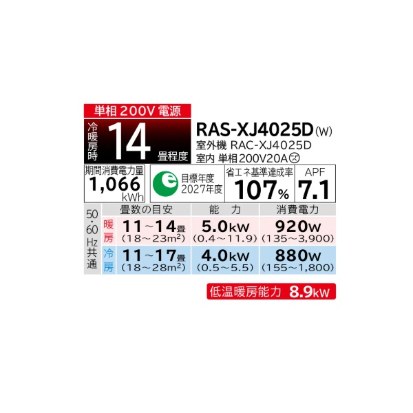 型番:RAS-XJ4025D-W / RAS-XJ4025D / RASXJ4025D