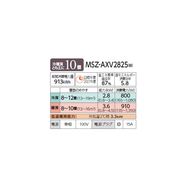 型番:MSZ-AXV2825-W / MSZ-AXV2825 / MSZAXV2825