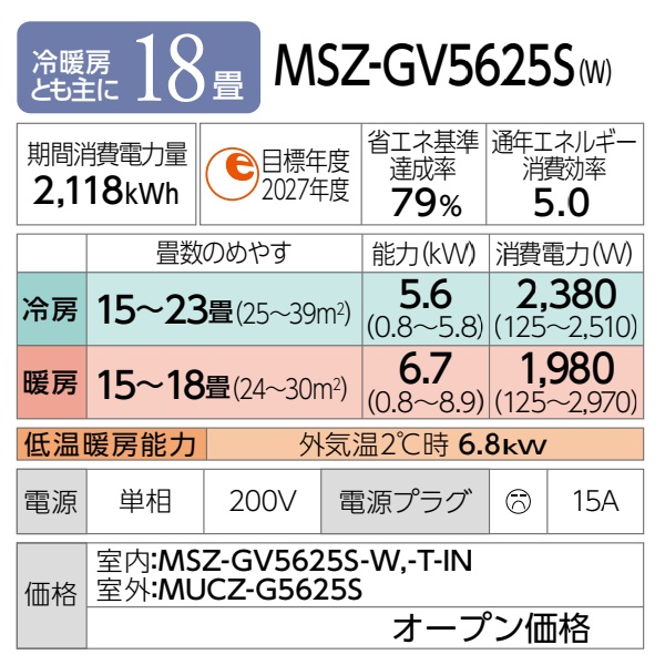 型番:MSZ-GV5625S-W / MSZ-GV5625S / MSZGV5625S
