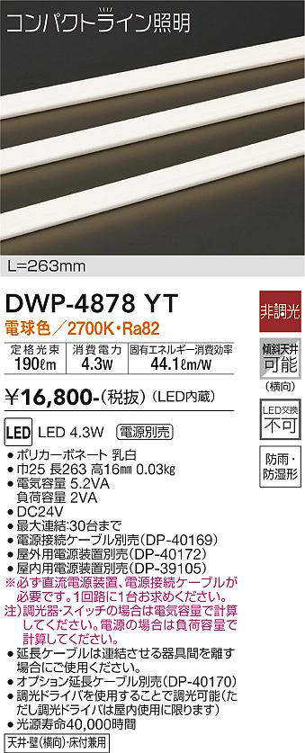 大光電機(DAIKO) DWP-4878YT 間接照明 非調光 コンパクトライン 263mm 電球色 LED内蔵 防雨型 [dwp-4878yt]