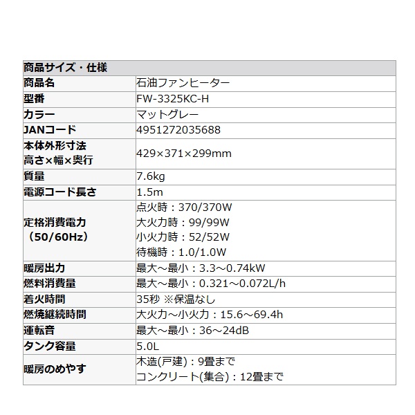 ダイニチ Dainichi FW-3325KC-H 石油ファンヒーター マットグレー 木造9畳 コンクリート12畳 小型 ℃℃ [fw-3325kc-h]