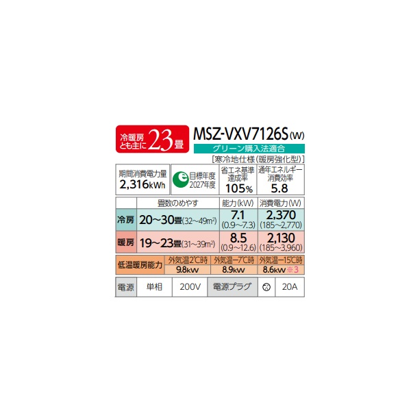 型番:MSZ-VXV7126S-W / MSZ-VXV7126S / MSZVXV7126S