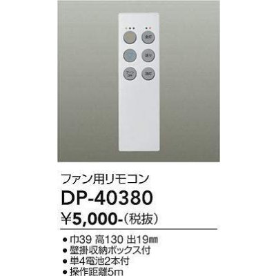 大光電機(DAIKO) DP-40380 ランプ・パーツ シーリングファン用リモコン 単4電池2本付 壁掛収納ボックス付 [dp-40380]