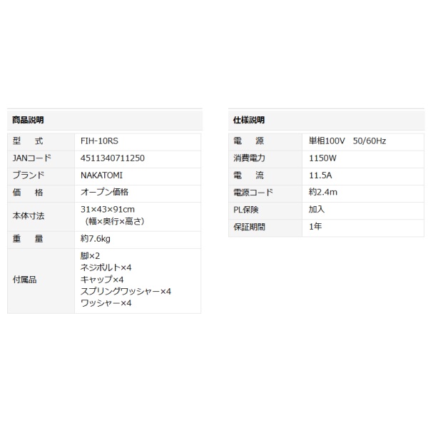 ナカトミ FIH-10RS 遠赤外線電気ヒーター 単相100V NAKATOMI♪ [fih-10rs]