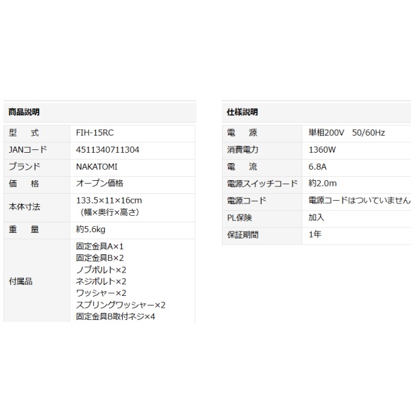 ナカトミ FIH-15RC 天吊り型遠赤外線電気ヒーター 単相200V NAKATOMI♪