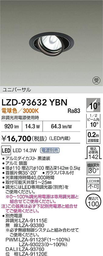 大光電機(DAIKO) LZD-93632YBN ダウンライト φ埋込穴100 電源別売 電球色 LED ユニバーサル ブラック 受注生産品[§] [lzd-93632ybn]